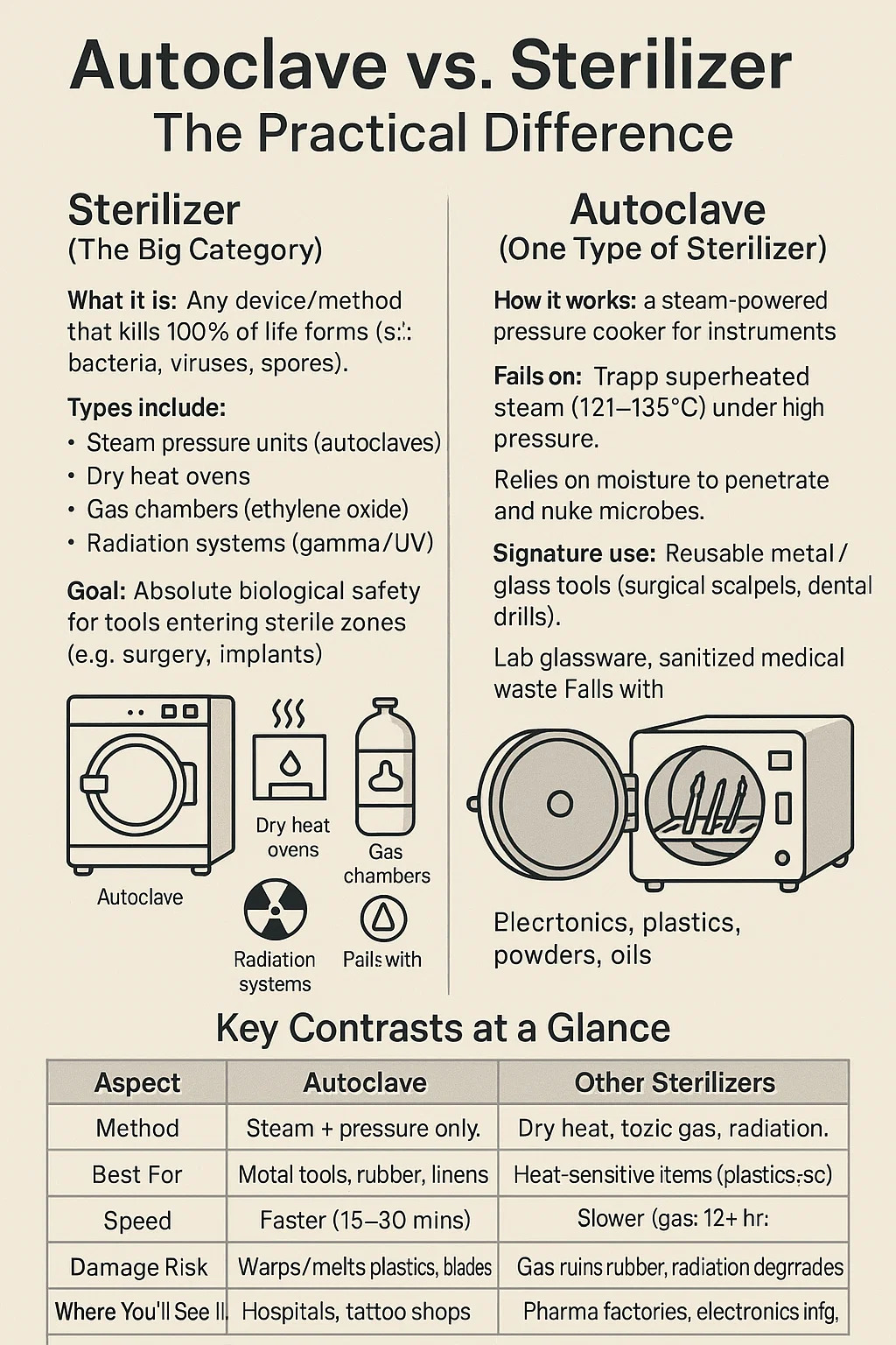 | Onde você verá | Hospitais, lojas de tatuagem, laboratórios. | Fábricas farmacêuticas, fabricação de eletrônicos. |