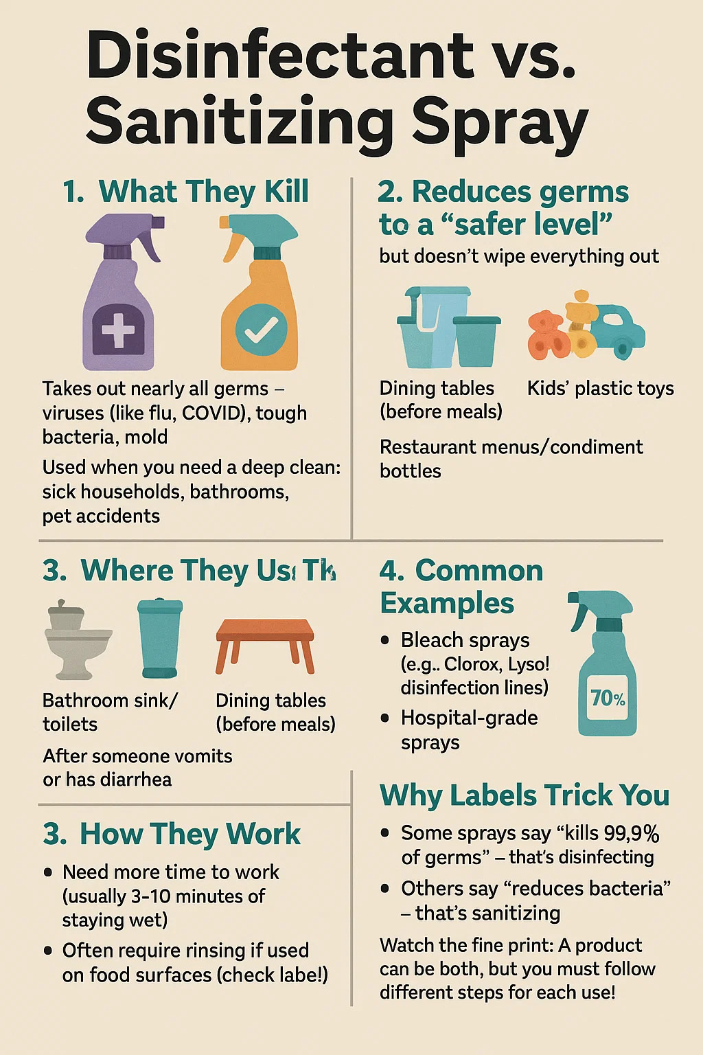 Aqui está a diferença do mundo real entre sprays desinfetantes e sprays desinfetantes: